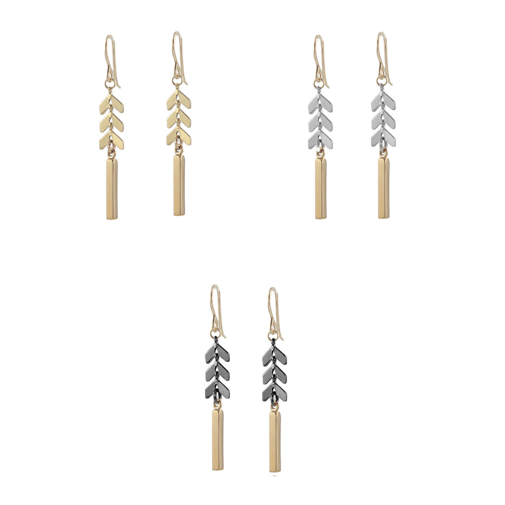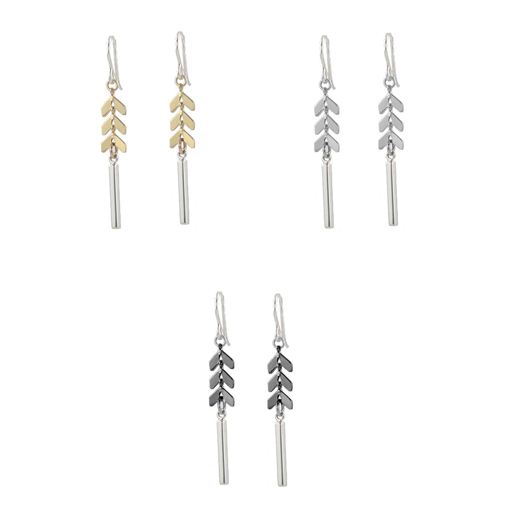 Choose your choice of chevron chain finish and bar charm. Sorry, oxidized is not currently available. Earring dangle 1 3/4" tall.