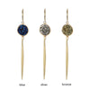 Druzy round measures approx. 12mm in diameter, with quill measuring 2" long. On French leverback earwires. Also available in blue, bronze or silver druzy stone color!