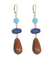 These earrings are inspired by architect Frank Lloyd Wright and his "prairie style" of simplicity and love of mixing functionality with nature. Bayong wood drops are matched with the yummiest saucers of cobalt blue lapis and brilliant blue turquoise rounds. On French leverback earwires. Wear these with jeans or a gorgeous jewel tones.