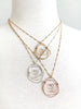 Rosette measures approx. 1" tall. Choose 16" , 18", 20" or 22" chain. Lobster clasp. The 14k gold-filled or 14k rose gold-filled pendant is matched with the 14k gold-filled chain (for a mixed metal look).